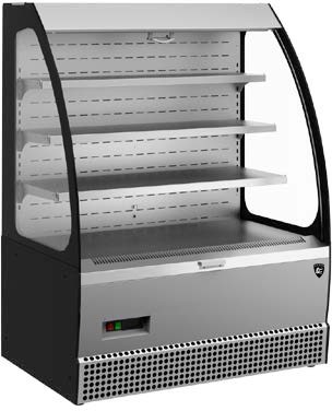 950х780х1265 t режим +1…+10 C. Витрина холодильная,со встроенным агрегатом, 3 металлические полки, полезный объем —0,21 м3,охлаждаемая площадь поддонов для выкладки продуктов, 1,1 м2, динамическое охлаждение, оттайка естественными теплопритоками, потр. эл.энергии в сутки —11,45кВт, R290, цвет корпуса — черный