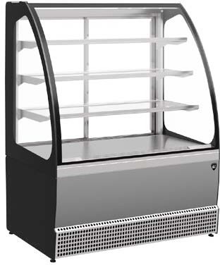 950х740х1265 t режим +5…+10 C. Витрина холодильная,со встроенным агрегатом, гнутое стекло, 3 стеклянные полки, полезный объем —0,28 м3,охлаждаемая площадь поддонов для выкладки продуктов, 1,4 м2, динамическое охлаждение, раздвижные задние шторки, оттайка естественными теплопритоками, потр. эл.энергии в сутки —4,5кВт, R290, цвет корпуса — серый матовый