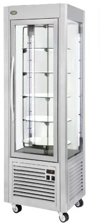 600х630х1850мм, 0,8кВт, 230В, -5...-18C, 360л, внутренние размеры 545х545х1200мм, 4 вращающиеся полки d=375мм, LED подсветка, 4 колеса