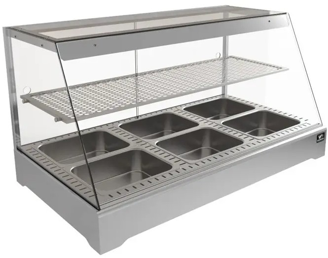 1165х650х630мм, Витрина тепловая настольная серии STANDART. Темп. режим +30+80С. В комплекте 6 гастроемкостей GN-1/2- 40 мм, перф. полка 1120х350мм. Подcветка. Мощность 2 кВт, 220В, 53кг